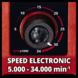 L’outil de meulage et de gravure sans fil TE-MT 18/34 Li-Solo Einhell est un appareil très pratique pour réaliser de nombreux travaux, notamment pour graver, polir, fraiser, meuler, découper et brosser. Il fait partie de la gamme Power X-Change Einhell, dans laquelle l’ensemble des batteries, chargeurs et appareils peuvent être combinés en toute flexibilité. Le variateur électronique permet d’adapter la vitesse en continu de 5 000 à 34 000 tours par minute en fonction du matériau et de la situation. Le bouton de blocage permet un changement d’outil simple et rapide. La pointe fixée à la tige flexible de 92 cm assure des résultats précis, même pour des travaux de détail et gravures complexes. Grâce à sa forme étroite et à ses surfaces Softgrip, l’outil de gravure tient parfaitement en main. La station de l’outil de meulage et de gravure est dotée d’un support très pratique pour la tige et la pointe. Elle comprend également un support pour les accessoires fréquemment utilisés et un compartiment amovible pour accessoires intégré au carter. En fonction du travail à réaliser, la station peut être portée directement à l’aide de la sangle d’une longueur de 150 cm, accrochée avec le support mural pour un gain de place ou installée en position stable grâce aux pieds en caoutchouc. L’outil est également vendu avec un kit complet de 55 accessoires pour un usage quasi universel. L’outil de meulage et de gravure sans fil TE-MT 18/34 Li-Solo est vendu sans batterie ni chargeur. Ces accessoires sont disponibles séparément, notamment dans le Starter Kit très pratique.