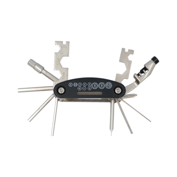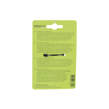 Cet outil multifonction 18 en 1 Dresco est spécialement conçu pour l’entretien et la réparation de vélos sur la route. Pratique, il contient des clés Allen dans les tailles 2 / 2 ½ / 3 / 4 / 5 / 6 / 7 et 8 mm, une clé plate dans les tailles 8 / 9 / 10 / 13 / 14 et 15, une clé à rayons de taille 14 et 15G, un outil à chaîne et un tournevis Phillips et plat. Grâce à sa taille compacte, il est facile à emporter lors de déplacements à vélo.