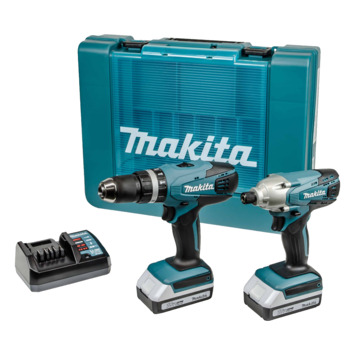 Le pack combo Makita contient une perceuse sur accu et une visseuse à chocs sur accu 18 V, pour tous vos travaux dans le bois, le métal et la pierre. L'ensemble est livré avec 2 batteries 1,3 Ah et un chargeur.