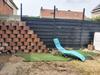 Les poteaux mesurent 270 cm de long. Cela signifie qu'ils doivent être enfoncés d'environ 90 cm dans le sol. Avant de placer les poteaux dans le sol, vous pouvez appliquer du goudron noir sur la partie à enterrer pour éviter la pourriture du bois. Ceci n'est pas inclus dans le forfait. Avant de commencer, tendez un fil tendu à 5 centimètres du sol. En plaçant la clôture au-dessus du sol, vous garantissez une durée de vie plus longue de la clôture. Percez un trou avec une tarière et enfoncez le poteau dans le sol jusqu'à ce qu'il soit à 185 centimètres du sol. Faites cela également pour le deuxième poteau. Les supports de clôture tressée doivent être placés sur le poteau à la hauteur des planches intermédiaires de la clôture. Il y a 4 supports d'écran tressés par section de clôture. Dessinez d'abord ces points sur le poteau, fixez les supports, puis montez la clôture sur les supports entre les poteaux. Vous placez ensuite le poteau suivant puis l'écran jusqu'à ce que tout le jardin soit clôturé. Assurez-vous que chaque écran soit correctement mesuré avant que le poteau suivant ne soit enfoncé dans le sol.