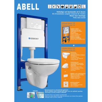 Pack WC complet Duofix Abell avec bâti-support et réservoir encastré Geberit UP100 et cuvette suspendu  ecoCheck