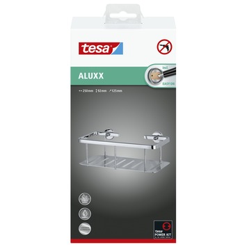 Ce support de douche tesa® Aluxx en aluminium chromé brillant est résistant à la rouille et possède une plaque de base élégante. Avec cela, tous vos articles de douche sont bien rangés. Le montage est facile grâce à la technologie brevetée tesa® Power.Kit : 1) Collez les adaptateurs sur le mur et remplissez-les avec l'adhésif tesa® Power.Kit 2) Laissez ensuite l'adhésif durcir pendant 12 heures 3) Vissez le rack sur les adaptateurs . Tous les matériaux nécessaires sont inclus dans l'emballage : receveur de douche et kit de montage BK43-2. Vous pouvez également retirer le rack plus tard, sans résidu de colle. Avec l'adaptateur BK43-2, qui est également disponible séparément, il n'y a aucun problème à fixer l'étagère de douche ailleurs. Convient pour les carreaux, le métal, la pierre naturelle, le marbre, le béton, le bois, le verre et de nombreux types de plastique. Ne convient pas aux papiers peints, stucs et autres surfaces avec un revêtement antiadhésif. Plusieurs variantes de la gamme de produits Aluxx sont disponibles.