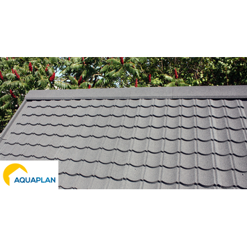 Souhaitez-vous construire rapidement une nouvelle toiture ? Pour ce faire, il ne vous reste qu’à opter pour la tôle de toiture Aquaplan Aqua-Tuile métal anthracite 1m². Aqua-Tuile by Aquaplan est un concept de tuiles universel composé de plaques de toiture métalliques qui vous permet d'installer 35 tuiles (5 tuiles de largeur, 7 tuiles de longueur) en même temps et en un tour de main. Très pratique si vous désirez notamment équiper votre résidence de vacances, votre cabanon ou votre abri de jardin d'un toit soigné dans une durée de temps relativement rapide. Les panneaux de toiture peuvent être facilement fixés sur des toits inclinés (de 10° à 85°) avec les accessoires correspondants et grâce au concept unique, l'Aqua-Tuile s'adapte à chaque toit. Vous n'aurez donc plus d’effectuer une découpe ou de découper la plaque, vous ne produirez donc pas de déchets et contribuerez à un meilleur respect de l'environnement. Utilisez les vis Aqua-Tuile spécialement conçues pour fixer les plaques. De cette façon, vous pourrez obtenir un toit étanche à l'eau. Vous préférez une autre couleur ? Aucun problème, car outre l'anthracite, ce produit est également disponible en rouge, vert, poivre et cerise noire. Autrement dit : le produit parfait pour la pose rapide et facile d'une belle toiture.