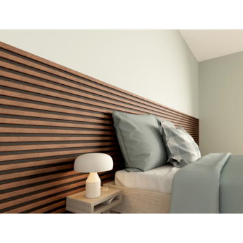 Créez votre cocon cosy avec les panneaux tasseaux acoustiques Decowall de CanDo green ! Grâce au dos en feutre, ces tasseaux contribuent non seulement à rendre vos intérieurs plus chaleureux mais optimisent en même temps leur acoustique. Dans un souci de durabilité, le feutre est fabriqué à partir de bouteilles PET recyclées et le bois (enrobé de film décoratif) est issu de forêts gérées de façon durable.