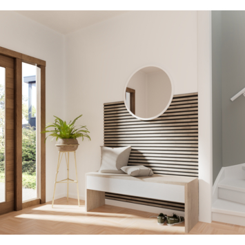 Créez votre cocon cosy avec les panneaux tasseaux acoustiques Decowall de CanDo green ! Grâce au dos en feutre, ces tasseaux contribuent non seulement à rendre vos intérieurs plus chaleureux mais optimisent en même temps leur acoustique. Dans un souci de durabilité, le feutre est fabriqué à partir de bouteilles PET recyclées et le bois (enrobé de film décoratif) est issu de forêts gérées de façon durable.