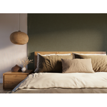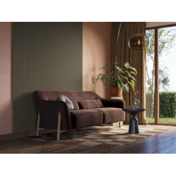 Les lattes demi-rondes au look tissu ou bois créent un aspect unique et doux qui enrichit visuellement la pièce tout en ajoutant une touche unique et sophistiquée à votre espace. Parfaits pour les salons, chambres ou bureaux à domicile, les tasseaux acoustiques créent une ambiance accueillante et chaleureuse. En plus de leur esthétique raffinée, ils offrent une isolation phonique supérieure grâce à des matériaux spécialement conçus pour atténuer le bruit ce qui est idéal pour les pièces nécessitant un confort acoustique supplémentaire. La combinaison de feutre et de MDF améliore également l'isolation thermique, faisant de ce produit un choix intelligent pour votre intérieur. L'installation est simple et rapide, permettant de fixer les lattes sur des murs ou plafonds irréguliers avec de la colle, du mastic et/ou des vis. Quel que soit le style de votre intérieur, les tasseaux Decowall Acoustic Curve s'intègrent harmonieusement et ajoutent une touche de sophistication.