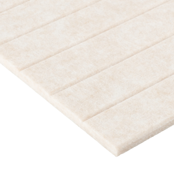 Installez les panneaux aisément avec la colle de montage (art. 295815). Veillez à laisser un espace de 2 mm entre chaque panneau lors de l’installation pour garantir la distance correcte entre les lattes. Le feutre peut en effet se dilater légèrement en fonction des variations de température. Pour une finition parfaite, utilisez un profilé d’angle (art. 226143) ou des plinthes inférieures et supérieures (art. 226144).