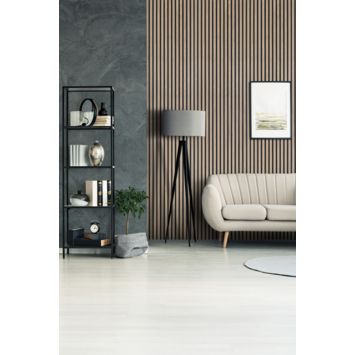 Avec ces panneaux tasseaux prêts à l'emploi, vous pouvez créer facilement et rapidement un design chaleureux et stylé dans n'importe quelle pièce de votre maison ! Le panneau mesure 260 cm de long et 52 cm de large. Les lattes en bois mesurent 2,5 cm de large chacune et l'espace entre les lattes est de 1,5 cm. Le panneau arrière en feutre, fabriqué à partir de matériaux tels que des bouteilles en PET, est traité de manière à ce que l'on puisse directement travailler avec un nouveau panneau tout en maintenant la bonne distance entre les lattes. Sur le feutre, il y a des lattes en MDF de couleur noire qui sont recouvertes de véritable placage en bois. Chaque latte individuelle est donc unique. Le panneau tasseau est disponible en deux décorations : chêne clair et noyer grisé.