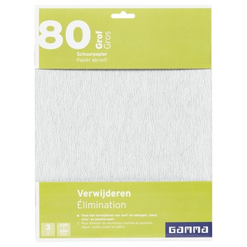 Le papier abrasif mi-brut avec taille de grain 80 de GAMMA convient pour les gros travaux de ponçage comme le ponçage de surfaces rugueuses sur le bois, le métal ou le plastique. Tuyau : vous pouvez tenir le papier à poncer en main ou le fixer à un appareil prévu à cet effet. Ce set contient 3 feuilles de ponçage avec une dimension de 23 sur 28 centimètres. Disponible en différentes tailles de grain abrasif.