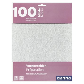 Le papier abrasif brut avec taille de grain 100 de GAMMA convient pour les travaux de ponçage conséquents comme le ponçage de surfaces rugueuses sur le bois, le métal ou le plastique. Tuyau : vous pouvez tenir le papier à poncer en main ou le fixer à un appareil prévu à cet effet. Ce set contient 3 feuilles de ponçage avec une dimension de 23 sur 28 centimètres. Disponible en différentes tailles de grain abrasif.