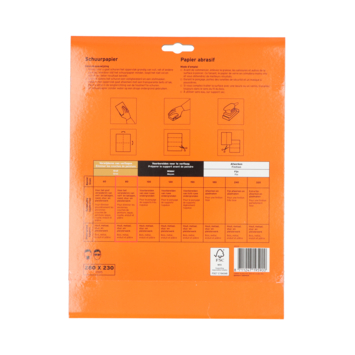 Pour enlever les couches de peinture et de vernis, la rouille et les plâtres. 3 feuilles par emballage. Papier latex durci à gros grain 80 avec revêtement anti-encrassant assurant une plus longue durée de vie.
