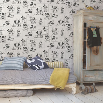Le papier peint Graham & Brown Easy est abordable, facile à fixer (avec une bonne technique !) et tendance. Il ne vous reste plus qu’à choisir votre motif préféré ! Que pensez-vous de ce modèle orné d'authentiques croquis en noir et blanc de Mickey & Minnie ? On les croirait dessinés à la main ! Sympa dans une chambre pour enfant ou salle de jeux. Astuce : pour tapisser intelligemment, adoptez la bonne technique en jetant un œil à nos conseils bricolage.