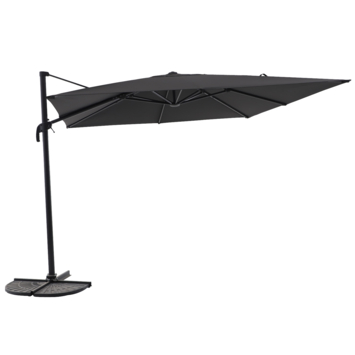 Avec ce parasol excentré de Handson, vous pouvez créer un bel espace ombragé dans votre jardin ou sur votre terrasse. L'Ibiza est disponible en noir élégant et a une taille de 300x300 cm, ce qui le rend parfaite pour ombrager les grandes tables ou chaises longues. Le tissu en polyester noir vous protège du soleil, tandis que le cadre en métal assure la stabilité. Grâce au mécanisme de pliage pratique avec levier, l'ouverture et la fermeture du parasol sont un jeu d'enfant. Placez-le simplement où vous le souhaitez et profitez de l'été sans vous soucier du soleil. Avec sa forme carrée, il est non seulement pratique, mais aussi un bel ajout à votre espace extérieur. Le parasol est également robuste, vous pouvez donc en profiter longtemps, même avec un peu plus de vent. Complétez votre vie en plein air avec le parasol excentré carré Handson Ibiza !