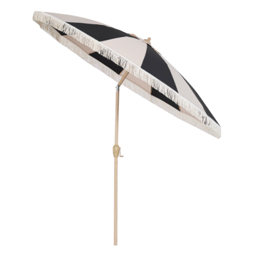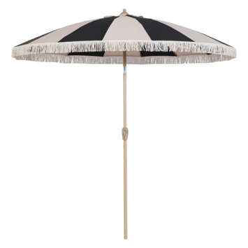 Avec le parasol à franges Handson Venise en noir/beige, vous donnez à votre espace extérieur une véritable mise à niveau. Cet élégant parasol à tige a un diamètre généreux de 250 cm et offre beaucoup d'ombre lors des journées ensoleillées. Le matériau en polyester offre une finition robuste et résistante aux intempéries, afin que vous puissiez en profiter longtemps. Le mécanisme de pliage intelligent avec levier rend l'ouverture et la fermeture très faciles. Que vous lisiez un livre dans le jardin ou que vous fassiez un bon barbecue, ce parasol vous permet de créer immédiatement un endroit agréable et ombragé. La combinaison du noir et du beige en fait un complément parfait à presque tous les espaces extérieurs. Le parasol Handson Venice est absolument un incontournable pour tout amateur de jardin !
