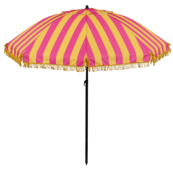 Ce parasol Osborn aux rayures jaunes et roses apporte une touche ludique et estivale à votre jardin, terrasse ou balcon. Les franges sur les bords ajoutent une finition parfaite au design. Même sous l'ombre, vous profitez d'une atmosphère ensoleillée ! Fabriquée en polyester de haute qualité, la toile offre une valeur UPF de 30+, bloquant ainsi 96,7% des rayons UVA et UVB nocifs.