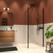 Une douche luxueuse. Avec cette douche à l'italienne de type A1 de Inc. créez sans effort une sensation d'espace et d'apaisement dans votre salle de bain. La paroi vitrée fait 90 cm de large et pas moins de 2 mètres de haut avec une paroi latérale de 30 cm pour qu'une chaleur agréable reste dans la douche. Le profil mural cache également toutes les vis, ce qui rend le nettoyage un jeu d'enfant. La douche à l'italienne est livrée avec un support stabilisateur et un panier de douche. Le support stabilisateur a une longueur de 1 mètre, est facile à raccourcir et peut être monté soit à angle droit soit sous angle. La finition noire mate complète l'ensemble et apporte une touche robuste à la salle de bain.
