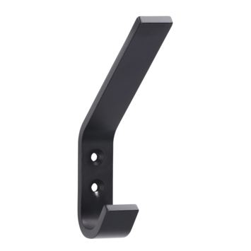 Mooie haak met dubbele functie. Stevig materiaal. Wel stevigere schroeven gehaald, want die erbij zitten zijn niet stevig genoeg.