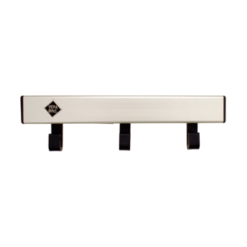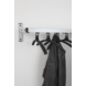 Patère murale avec 3 crochets suspendus à un rail.