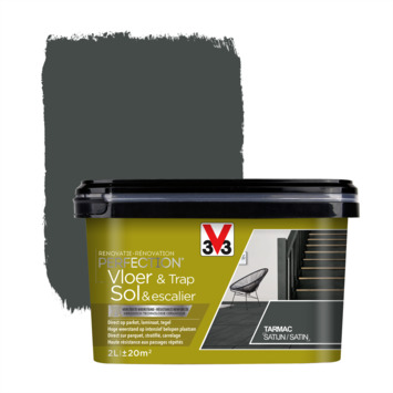 Avec la peinture de rénovation V33 Protection Sol & Escalier 'tarmac' 2 litres, vous donnez à vos sols et escaliers une nouvelle couche résistante. Cette peinture de rénovation est conçue pour rénover les sols en carrelage et en parquet ainsi que les escaliers à l'intérieur, qu'ils soient neufs ou anciens. Vous n'avez pas besoin de primaire et il n'est pas nécessaire de poncer ou de décaper.
