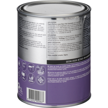 Une peinture murale à haut pouvoir couvrant qui s’applique facilement. Cette peinture convient pour de multiples applications: murs, plafonds, supports en béton, maçonneries et enduits, plaques de plâtre et voiles de verre... Pour un résultat final de qualité professionnelle, associez cet article au Primer Sigma Murs et Plafonds.