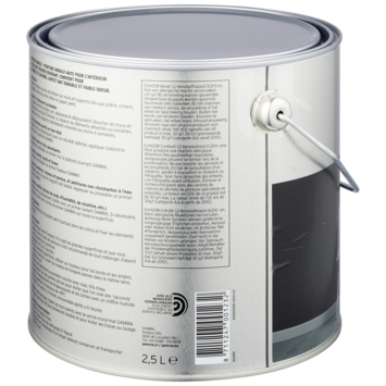 La peinture murale GAMMA pour intérieur convient pour les murs et les plafonds. La peinture murale GAMMA noir de jais 2,5 L est une peinture murale à l'eau sans odeur. Le bidon a une capacité de 2,5 litres, ce qui est suffisant pour une superficie d'environ 20 m². Deux heures après l'application de la peinture, la peinture est déjà sèche et après 6 heures, vous pouvez appliquer la couche suivante. La meilleure température pour travailler cette peinture se situe entre 8 et 25°C. Grâce à son excellent pouvoir couvrant, la peinture convient parfaitement comme couche de finition sur diverses surfaces, notamment le ciment et le plâtre, les plaques de plâtre, la fibre de verre, le béton et le papier peint.
