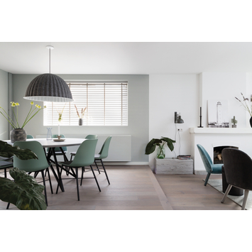 Onze muur in de gang had veel strepen en vlekken na de verhuizing. Na 1 laag van de verf ziet het er weer prachtig wit uit!