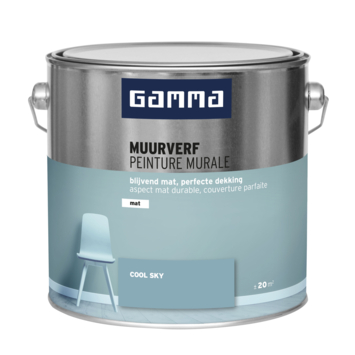 La peinture murale mate ‘Cool sky’ de GAMMA offre une couverture exceptionnelle et un fini mat durable, idéale pour les murs et plafonds intérieurs. Avec un conditionnement de 2,5 litres, elle permet de couvrir une surface d'environ 20 m².