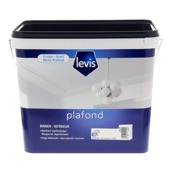 Levis Plafond est une peinture à base d'eau extra mate spéciale pour plafonds. Cette peinture a un haut pouvoir couvrant, elle n'éclabousse pas et masque les imperfections du plafond. Elle peut être appliquée sur la brique, le ciment, le plâtre etc. Disponible en 2 coloris.