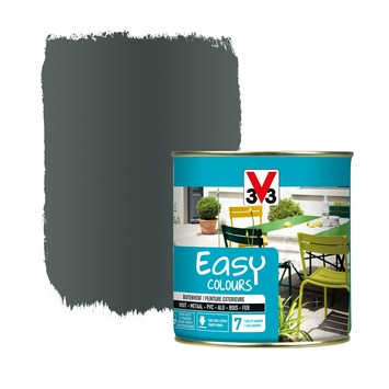 La peinture pour l'extérieur Easy Colours de V33 est votre alliée idéale pour la décoration ou la rénovation de tous types de surfaces à l'extérieur, comme vos meubles de jardin, barrières, etc. Cette peinture brillante de couleur anthracite métallique (500 ml) adhère à toutes les surfaces, comme des métaux (oxydés), cuivre, fer, aluminium, PVC et bois. Cerise sur le gâteau: Easy Colours est facile à appliquer, ce qui vous évite le décapage et le ponçage. Cette peinture résiste même à l'eau, aux taches, aux rayures, aux chocs, et aux intempéries. Disponible en d'autres couleurs.