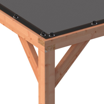 La toile d'ombrage anthracite est incluse dans l'emballage et est fixée via des œillets. Ceux-ci peuvent être tournés d'un quart de tour pour fixer le tissu. Grâce à cette fixation, le tissu ne peut pas se détacher à cause du vent, mais il est facile à retirer. La toile d'ombrage est perméable au vent et à l'eau, de sorte qu'aucune poche d'eau ne se forme. La toile d'ombrage bloque la plupart des rayons UV.