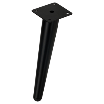 Ce pied de meuble en acier de forme conique noir mat est fabriqué en acier et a une finition thermolaquée. La capacité de charge est de 50 kg et les dimensions sont de 6x6x20 cm. Le pied est doté d'une plaque d'assemblage carrée préforée.