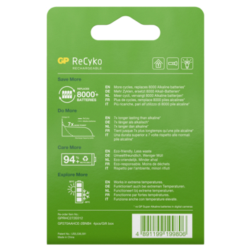 Pile rechargeable GP NiMH AA Recyko 2600 mAh 4 pièces