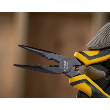 La pince à bec long Cushiongrip STHT0-74364 de Stanley mesure 20 cm et a une tête en en acier solide. Pour manier, plier et couper les câbles.
