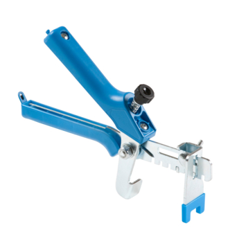 Utilisez les pinces KLS de Knauf pour ajuster sans effort les carreaux à la bonne épaisseur. Comment? Après avoir appliqué l'adhésif placez au moins 4 clips en forme de porte sur le pourtour de votre carrelage de manière à pouvoir y insérer des cales. Ensuite à l'aide de cet outil de pressage vous pourrez ajuster les cales à leur position finale .