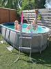 Heerlijk zwembad wat goed stevig is. De buizen zijn dik en van staal, de liner is ook van goed materiaal en blijft goed op z'n plek.