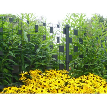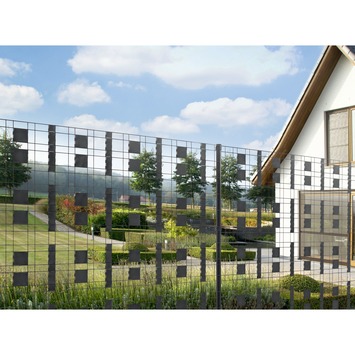 Personnalisez votre clôture Zenturo de Betafence avec des bandes à pixels en plastique qui vous permettent de 'remplir' entièrement ou partiellement votre clôture. Découpez-y des figures géométriques ou autres. Les pixels sont ici de couleur anthracite et mesurent 100 X 100 mm.
