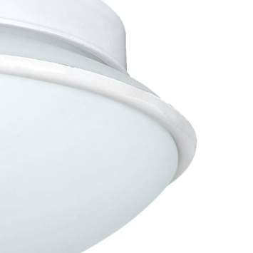 De lamp kan niet bevestigd worden in het standaard plafondplaatje. Wel als je het aluminium-kleurig bescherminsplaatje voor de lamp verwijdert, en daarna weer voorzichtig terugzet, eventueel met een dotje kit. En anders moet je 2 nieuwe gaatjes in het plafond boren. Bij mij hangt hij in de w.c.