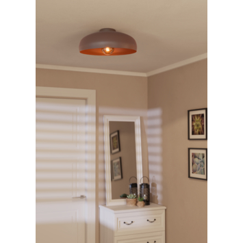 Le plafonnier Mogano se compose d'un abat-jour rond en métal moka de la même couleur à l'intérieur. Avec son design monochrome, ce plafonnier s'intègre parfaitement dans les intérieurs modernes. Il offre un éclairage minimaliste dans n'importe quelle pièce, que ce soit la cuisine, le salon, la chambre ou le couloir. La source lumineuse n'est pas incluse. Le luminaire est compatible avec n'importe quelle ampoule E27.