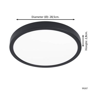 Le plafonnier Eglo Fueva 5 est idéal pour éclairer n’importe quelle pièce de votre maison, que ce soit dans le hall pour accueillir les invités ou dans le salon pour tout illuminer. La lampe est équipée d’une source lumineuse LED intégrée de 20 watts qui fournit une lumière blanche chaude avec un flux lumineux de 2400 lumens. Le Fueva 5 a un diamètre de 28,5 cm. La lampe est classée IP44, ce qui signifie qu’elle est adaptée pour une utilisation dans la salle de bain.