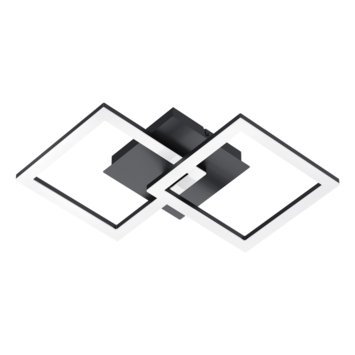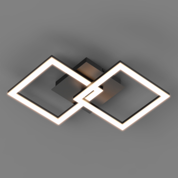 La lampe de plafond Malvera en métal noir a deux éléments d'éclairage LED en forme de losanges. Ce luminaire est fabriquée en métal et en plastique, avec une finition noire. La finition noire ajoute une touche de modernité à votre espace. Les dimensions de cette lampe sont de 52,2x31 cm.