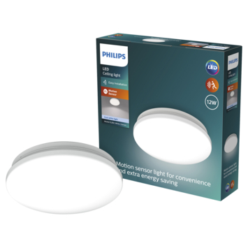 Ce plafonnier LED Philips Acuna 12 W combine un design classique avec une technologie moderne. Équipé d'un détecteur de mouvement intégré et invisible, ce luminaire ne reste jamais allumé inutilement.