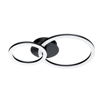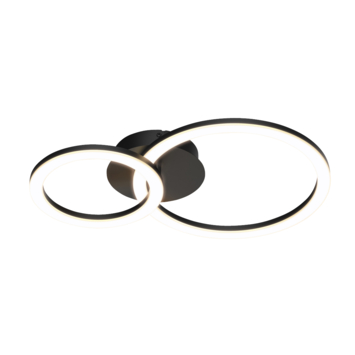 La lampe de plafond Malvera en métal noir a deux éléments d'éclairage LED ronds. Ce luminaire est fabriquée en métal et en plastique, avec une finition noire. La finition noire ajoute une touche de modernité à votre espace. Les dimensions de cette lampe sont de 45,5x30 cm.