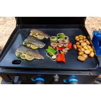 Avec sa plaque chauffante robuste à deux brûleurs, elle répond à toutes vos envies culinaires, du petit-déjeuner au dîner. Pratique, ingénieuse et ultra-complète, l’Ultimate Plancha est tout simplement la plancha qu'il vous faut.