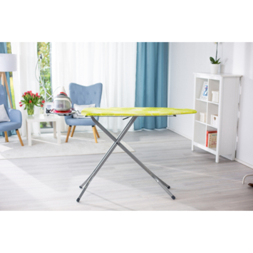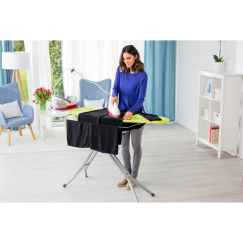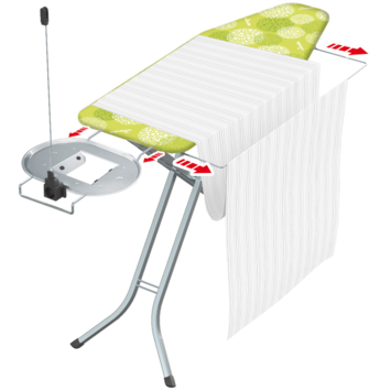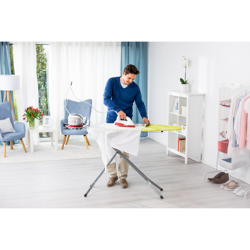 Table pratique et efficace pour un repassage parfait tout en confort grâce à sa largeur de travail, à sa rallonge et à son support de câble intégrés.