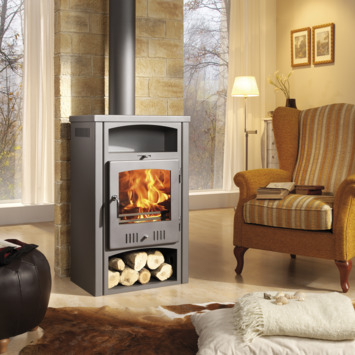 Le poêle à bois traditionnel Aragon plus chauffe des espaces jusqu'à 210 m³ avec une puissance de 6,7 kW. Il dispose d'une étagère séparée où vous pouvez garder des assiettes au chaud par exemple. Une étagère supplémentaire est prévue au-dessous pour le bois.