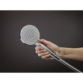 Simpele maar effectieve douchekop. Geeft goede straal en heeft een waterbesparende functie. Douchekop kan verschillende stralen water geven.