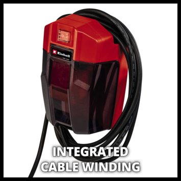 Le tube de rallonge, équipé d’un support pratique et d’un raccord d’eau amovible avec robinet d’arrêt pour l’ajout éventuel d’un tuyau d’arrosage, est télescopique et réglable en continu. Le boîtier de batterie séparé, étanche, comprend un dispositif de suspension et de fixation murale, ainsi qu’un support pratique pour ranger le câble.