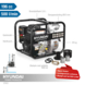 Bien que cette pompe ne soit pas adaptée à l'eau de mer ou aux produits chimiques, elle peut traiter des particules jusqu'à 7 mm de diamètre. Elle offre une hauteur d'aspiration de 7 m et une hauteur totale de refoulement de 23 mètres. Pesant seulement 29 kg, cette pompe est légère et facile à transporter et à stocker. Son châssis en aluminium robuste et ouvert la protège des chocs et des impacts, tout en servant de poignée pratique.