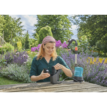 Sans-fil, pratique et flexible, la pompe pour collecteur d‘eau de pluie 2000/2 18V P4A GARDENA vous permettra d'alimenter un pistolet d'arrosage, un arroseur ou encore une installation goutte-à-goutte à partir d'un collecteur d'eau de pluie. Elle convient également pour évacuer ou transvaser les eaux claires. La batterie Li-Ion 18V, 2,5 Ah apporte de la liberté et de la puissance partout où vous en avez besoin. 3 modes de puissance différents peuvent être activés pour un équilibre parfait entre autonomie et débit d'eau. La pompe pour collecteur d‘eau de pluie GARDENA dispose également d'un mode minuterie qui permettra à la pompe de s’arrêter automatiquement selon vos besoins après 5, 10 et 15 min. La pompe GARDENA est également dotée d'un tube de refoulement coudé et télescopique ainsi que d'un socle amovible pour limiter l'aspiration des dépôts. Le coffre à batterie peut être soit laissé sur la pompe dans le cas de faible profondeur d'eau, soit détaché de la pompe et posé sur le sol ou accroché à l'aide du crochet métallique. Le coffre à batterie protège la batterie des intempéries. La pompe dispose également d'un disjoncteur thermique de sécurité. L'indicateur LED sur le boîtier batterie permet de suivre l’état de charge de la batterie en temps réel. La batterie POWER FOR ALL est compatible avec plus de 70 produits des 6 marques de l'ALLIANCE POWER FOR ALL.