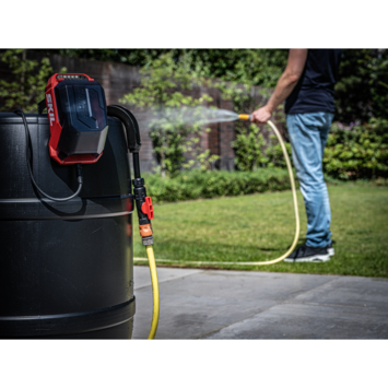 Grâce à sa capacité à puiser l’eau depuis des récupérateurs de pluie, des piscines ou toute autre source d’eau propre, elle délivre un débit performant de 2000 litres par heure. Son fonctionnement est entièrement personnalisable grâce à une minuterie à trois niveaux ou à un mode continu pour une utilisation prolongée. L’indicateur de niveau de batterie permet de surveiller facilement l’autonomie, qui peut atteindre jusqu’à 63 minutes avec une batterie 20V Max 5,0 Ah (non incluse).